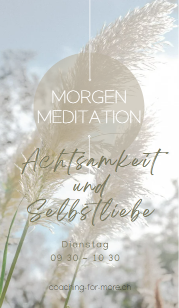 Ich freue mich sehr, mein Meditationsangebot zu erweitern und lade dich herzlich zur geführten Meditation «Achtsamkeit und Selbstliebe» ein – jeweils am Dienstagmorgen von 09 30 – 10 30.