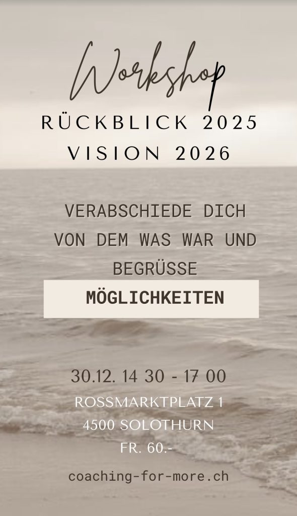 Zum Jahresende lade ich dich zu einem besonderen Workshop ein, in dem wir gemeinsam innehalten, reflektieren und neue Kraft für 2026 sammeln (inkl. Kurzmeditation, Visualisierung und Journaling).